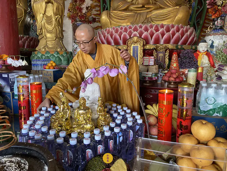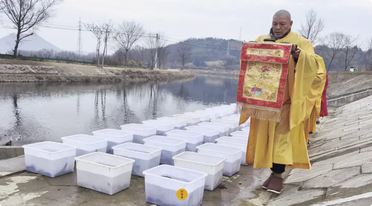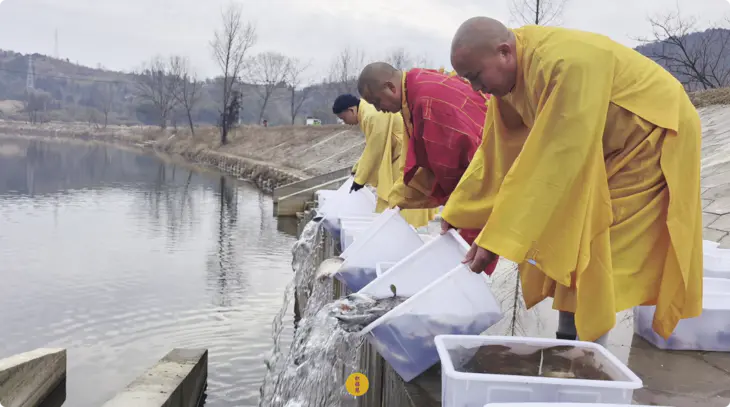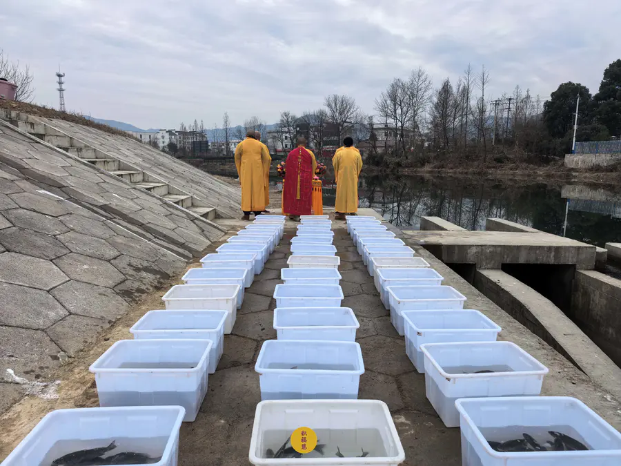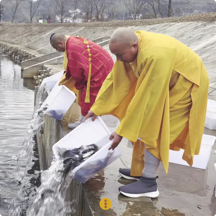 2025年1月7日释迦牟尼佛成道日,云南安国寺启建供灯供水法会,如理如法按次第起供,至2025年1月13日供圆满。同日,九华山西来禅寺诸位法师在安徽省池州市青阳县焦村九华河举行放生法会,放生鲫鱼、鲤鱼、泥鳅等水族众生(非野生动物)。