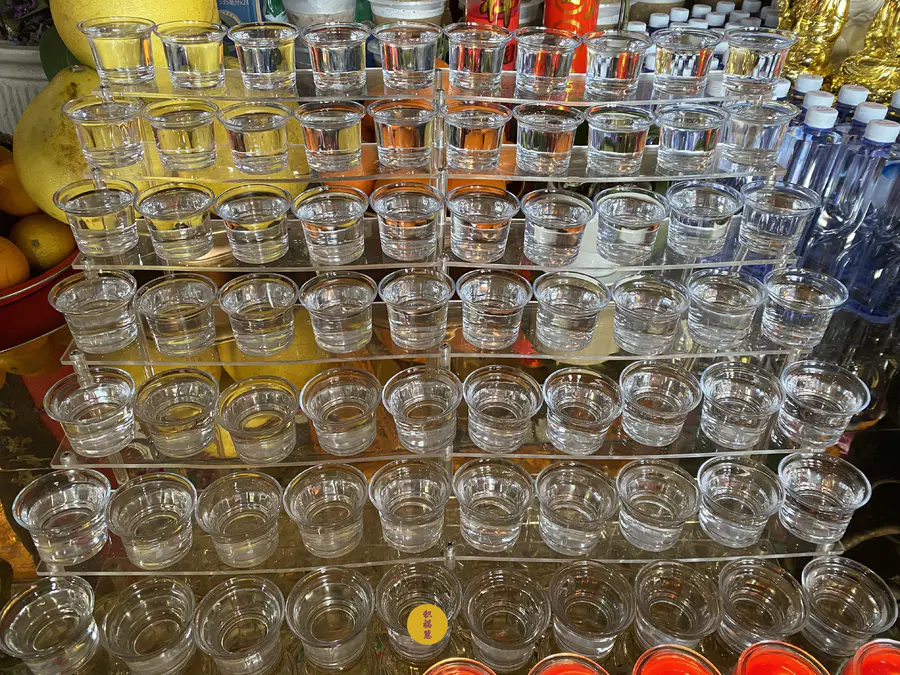 成道日前一天,酥油灯、净水已摆放就位