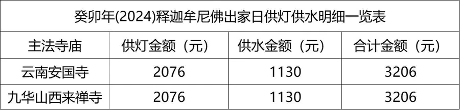 2024年3月17日,甲辰年二月初八,云南安国寺、九华山西来禅寺分别启建释迦牟尼佛出家日供灯供水法会,如理如法按次第起供,至2024年3月23日供圆满。