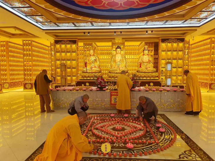 安国寺大雄宝殿,大众正心诚意点灯供佛