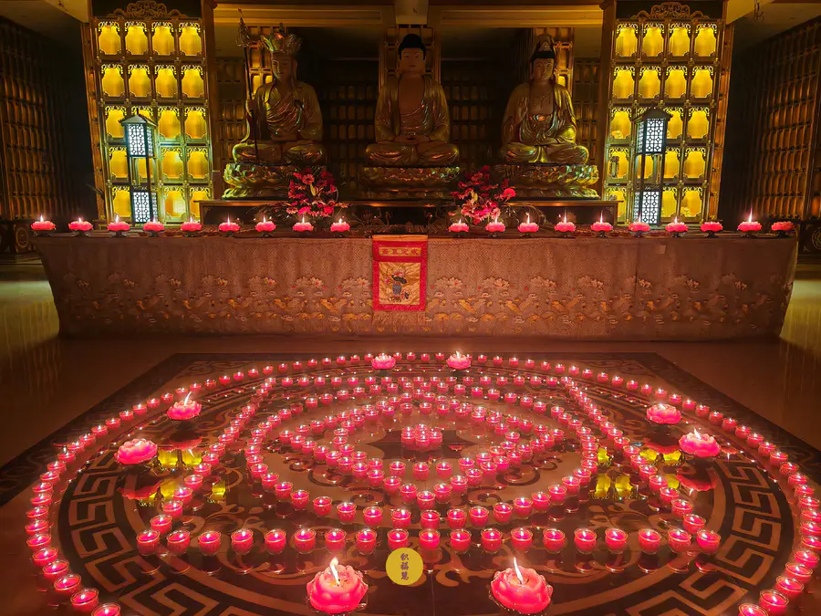 积福慧以此甲辰年(2024)释迦牟尼佛出家日供灯供水共修功德回向十方檀越、护法善信,身心康泰、生活幸福、智慧圆融、得闻正法、具足正念、自利利他、离苦得乐。直达无边功德海,实证般若不二门。祈愿佛光普照,广度众生,佛日增辉,究竟圆满。