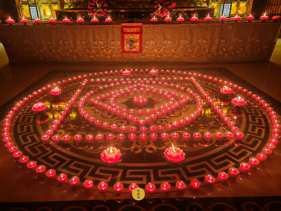 供灯是用灯的光明来启发大众,不仅能点燃外在的莲灯,同时也能点燃每个人自性的心灯,让心中的莲灯永放光明,找到回家的路。