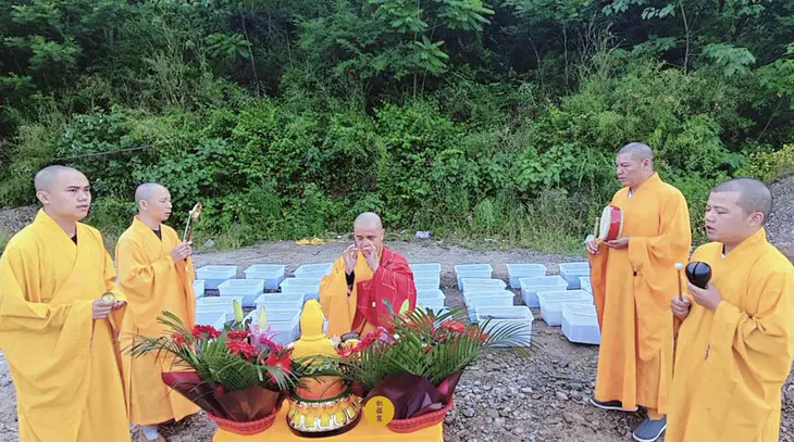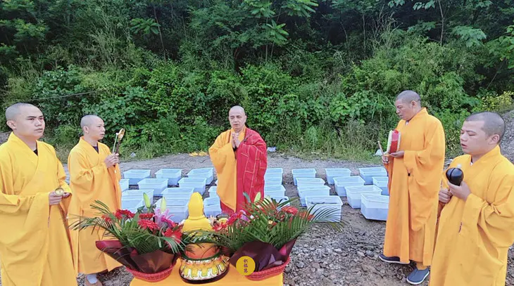 主法法师潜心诵持梵呗经咒,皈依仪轨,为放生物命种解脱善根,培植福德善缘。