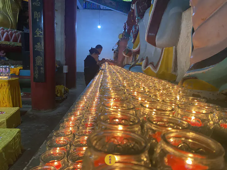 大雄宝殿四周,酥油灯依次燃起