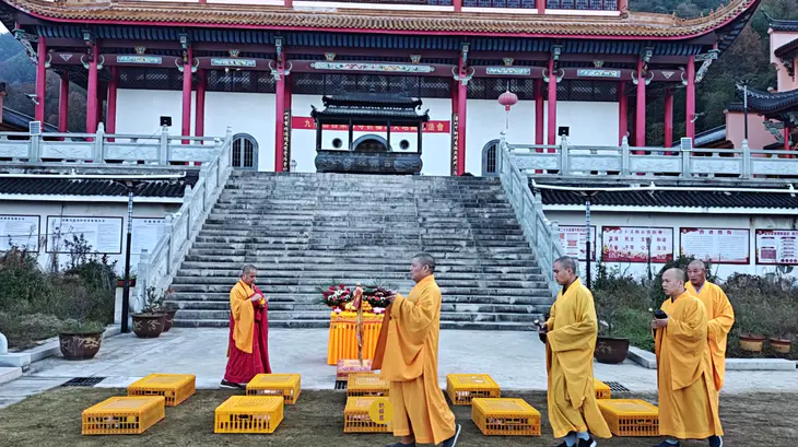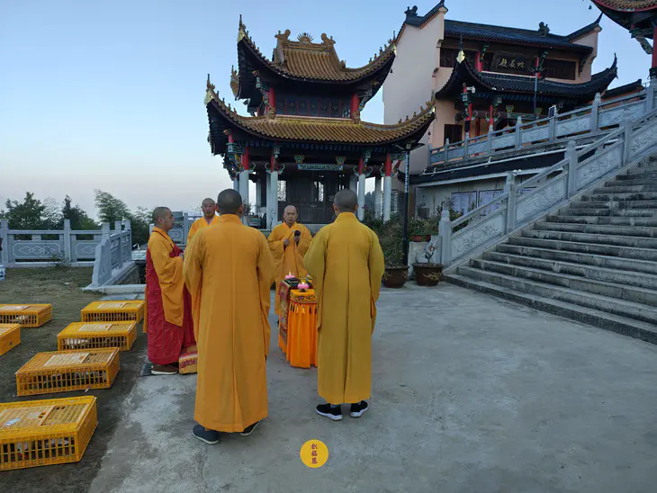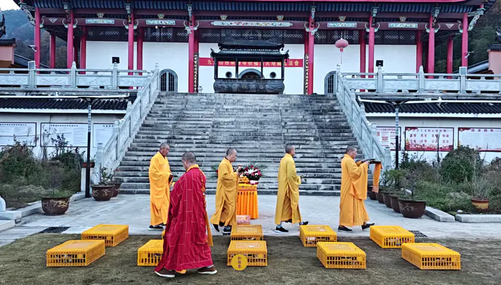 稍后,在西来禅寺大雄宝殿外的广场,举行第二次放生。