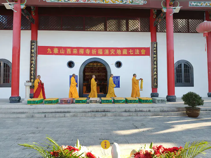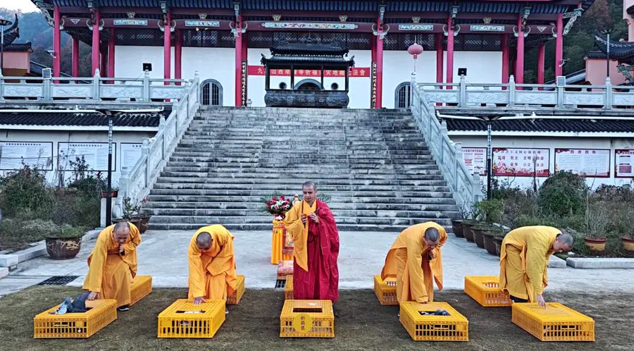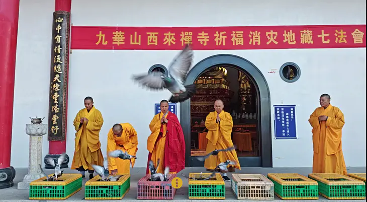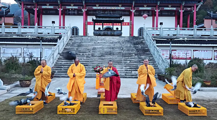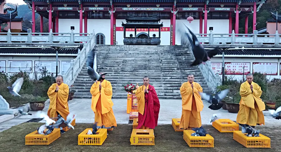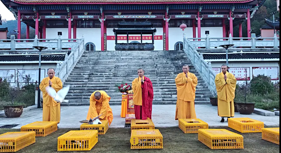 2024年11月15日,甲辰年十月十五,云南安国寺启建下元节供灯法会,如理如法按次第起供,至2024年11月21日供圆满。同日,九华山西来禅寺诸位法师在九华山西来禅寺举行放生法会,放生鸽子等飞禽众生。