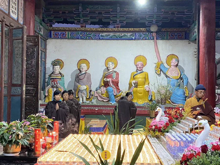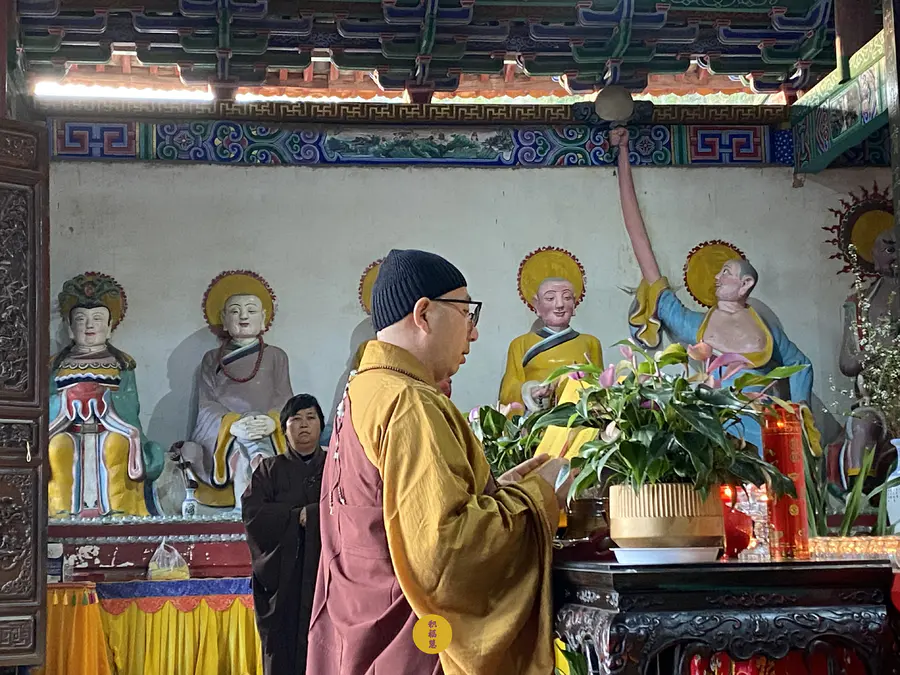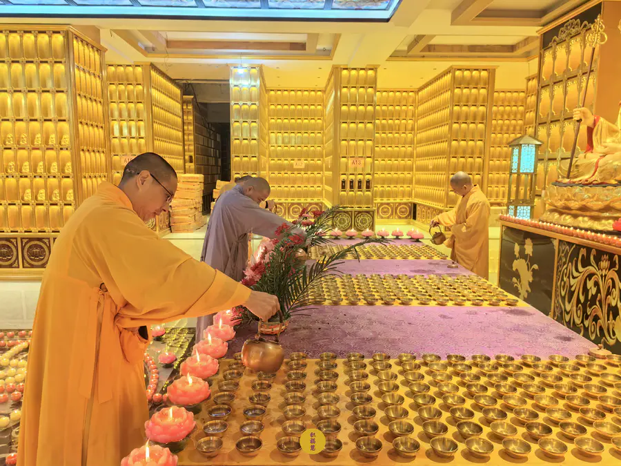 九华山西来禅寺常住法师虔心供灯供水