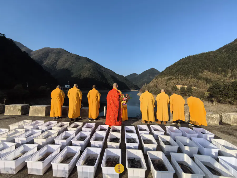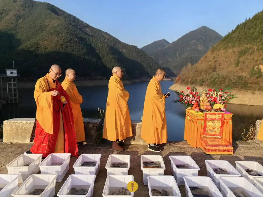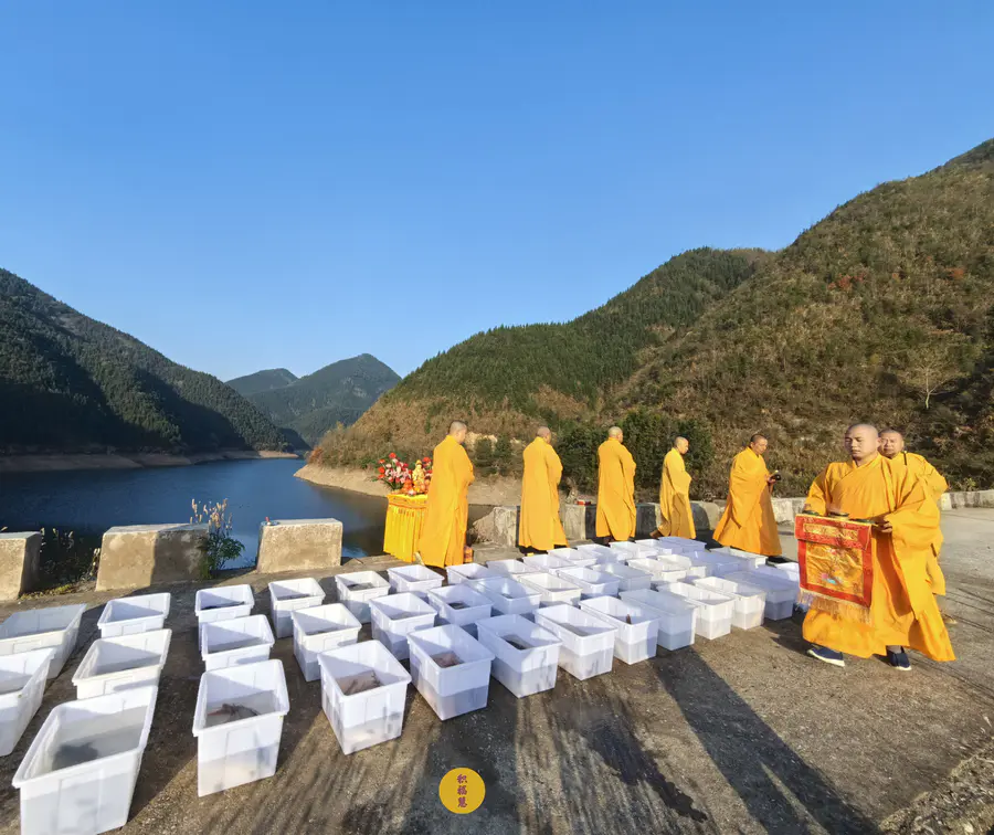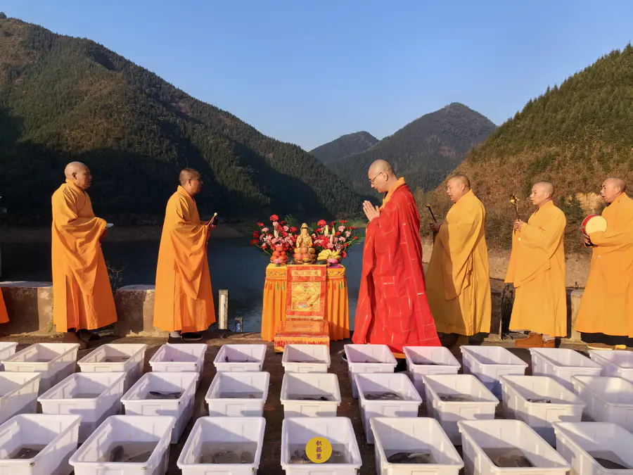 同日,九华山西来禅寺在安徽省池州市青阳县晚口水库放生乌龟、鲫鱼、鲤鱼等水族众生(非野生动物),金额合计6025元。