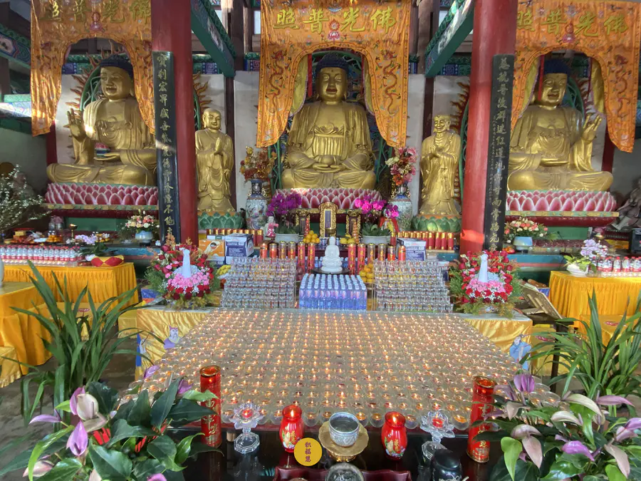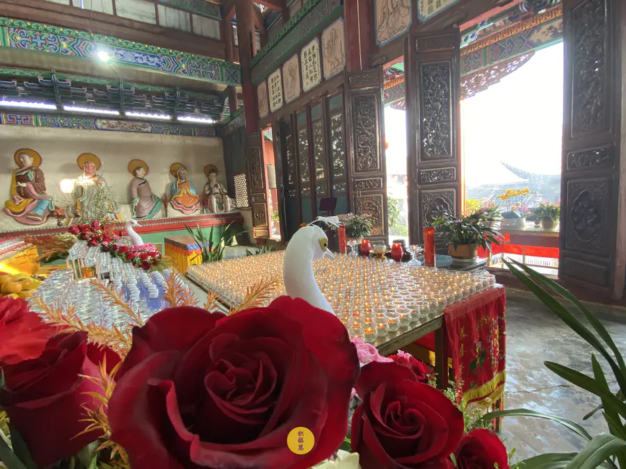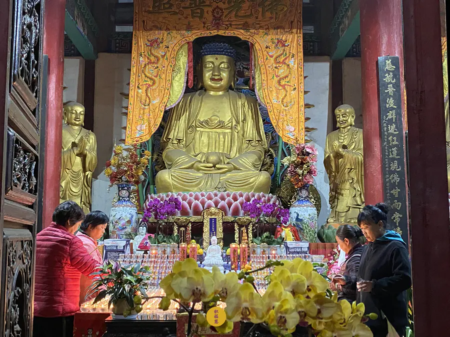 大雄宝殿内外都掩映在光亮之中