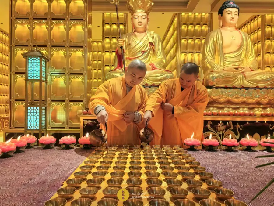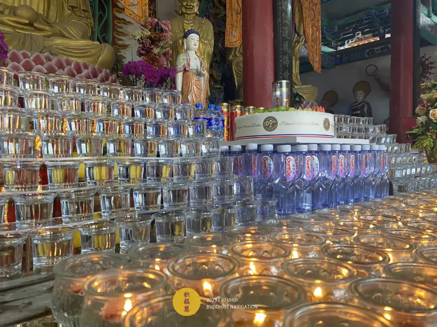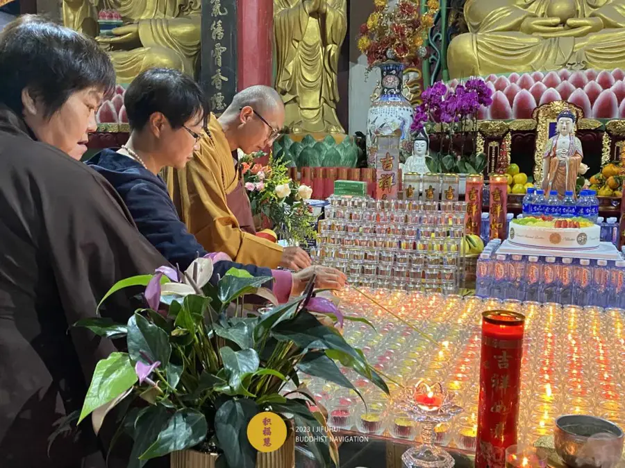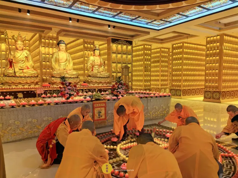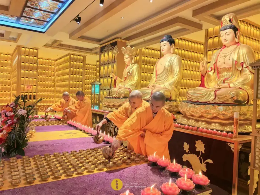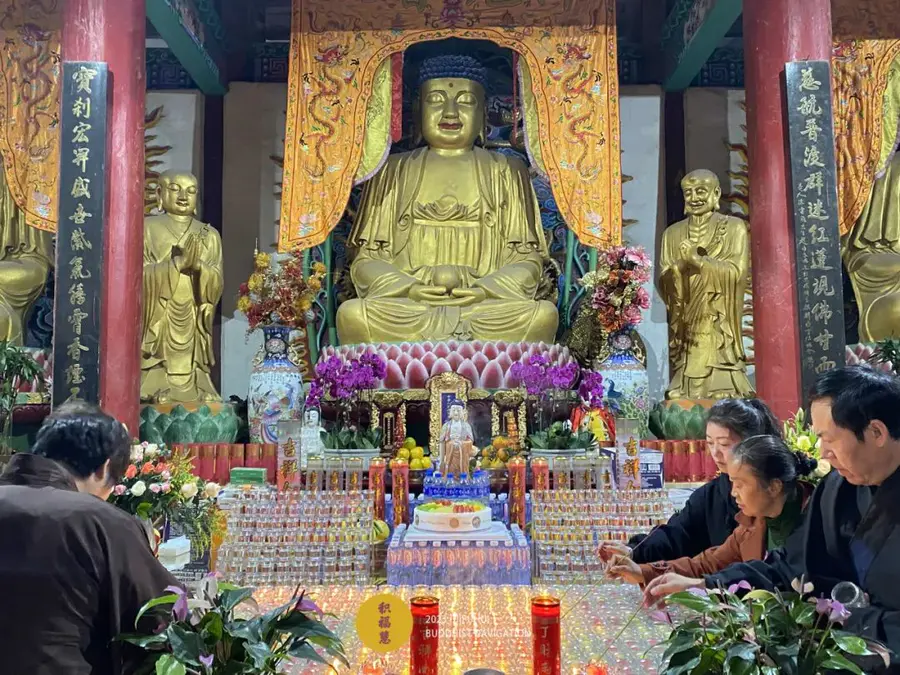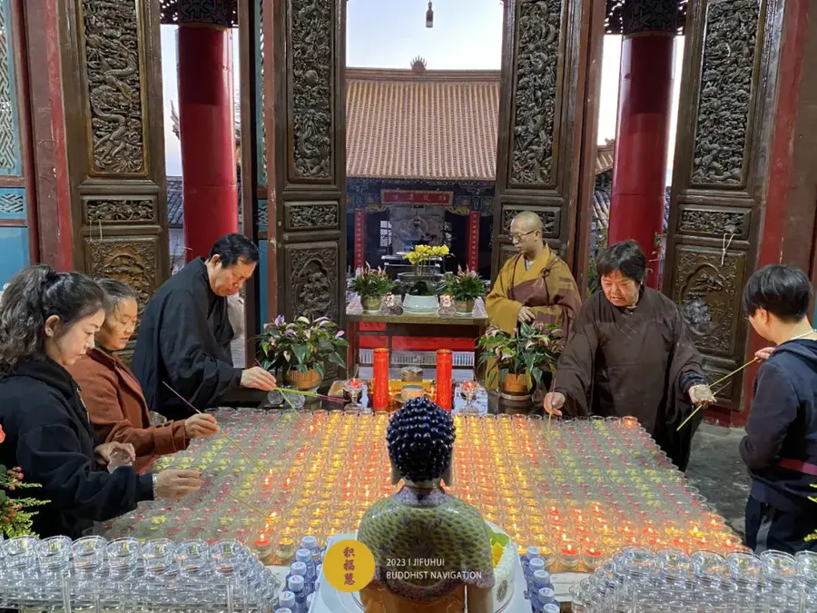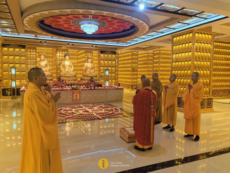 2023年12月12日,癸卯年九月十九,九华山西来禅寺、曲靖安国寺分别启建药师佛圣诞供灯供水法会,如理如法按次第起供,直至12月19日供圆满。