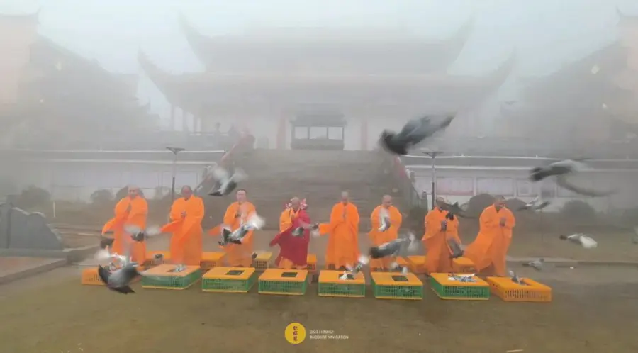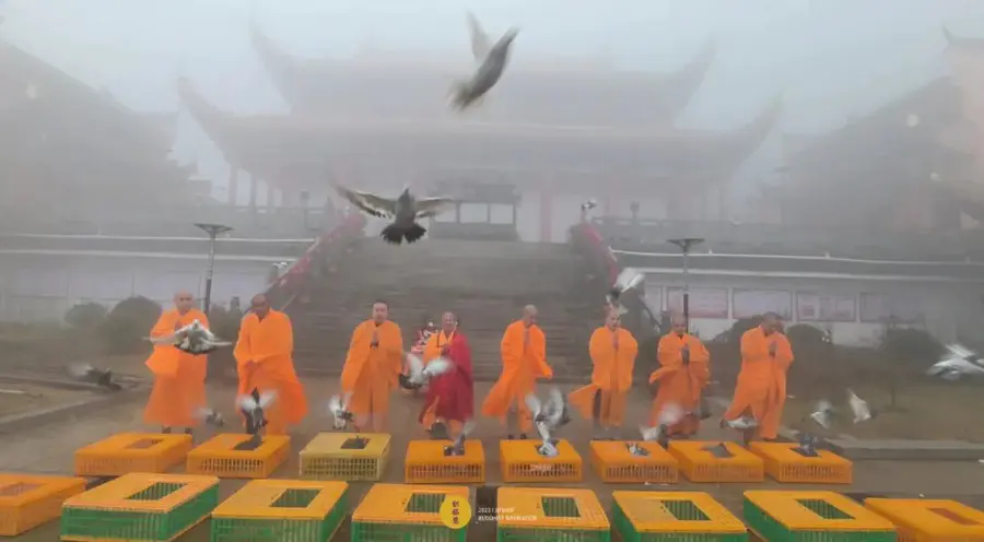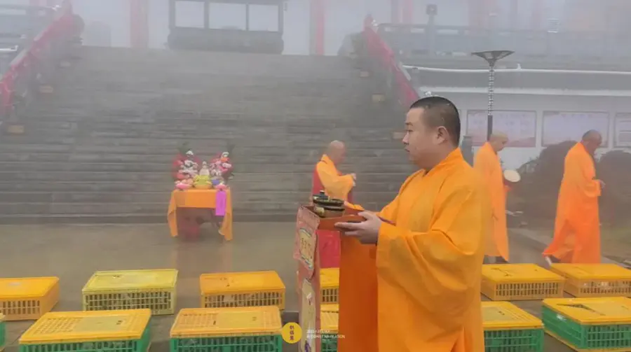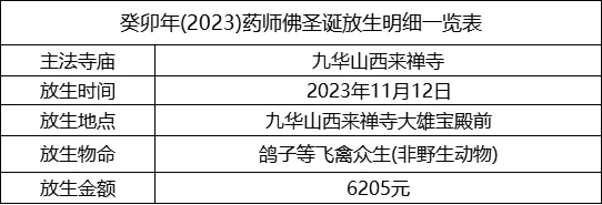 同日,九华山西来禅寺在大雄宝殿前放生鸽子等飞禽众生(非野生动物),金额合计6205元。