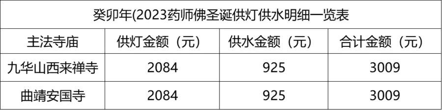 积福慧癸卯年药师佛圣诞共修自2023年11月4日启建,至2023年11月12日23时停止接收功德款,共计9天。同修随喜供灯款4168元,供水款1850元,放生款6205元。