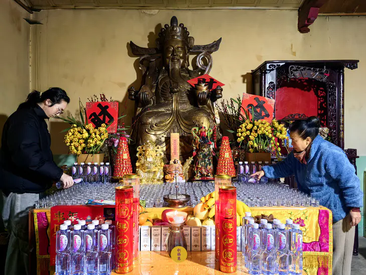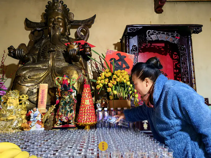 财神像前供水