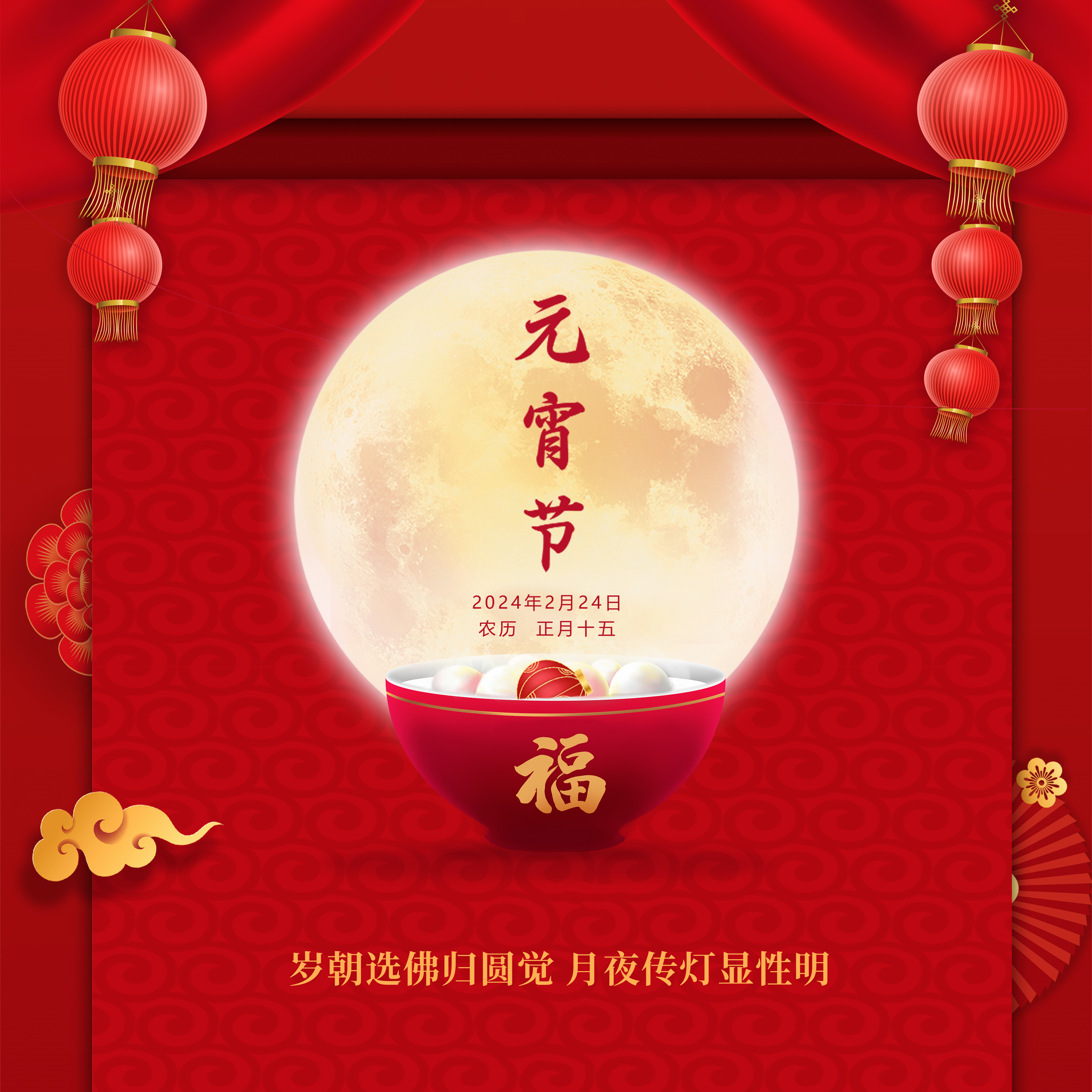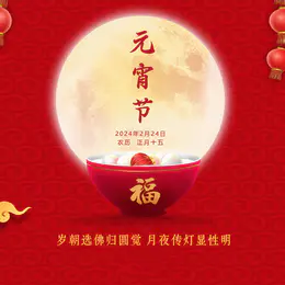 2024年2月24日,甲辰年正月十五,是传统节日元宵佳节。元宵节源于佛教正月十五僧人观佛舍利,点灯敬佛。心安即归处,月满人团圆。值此吉日祈愿国泰民安,风调雨顺。正法久住 ,心灯长明。