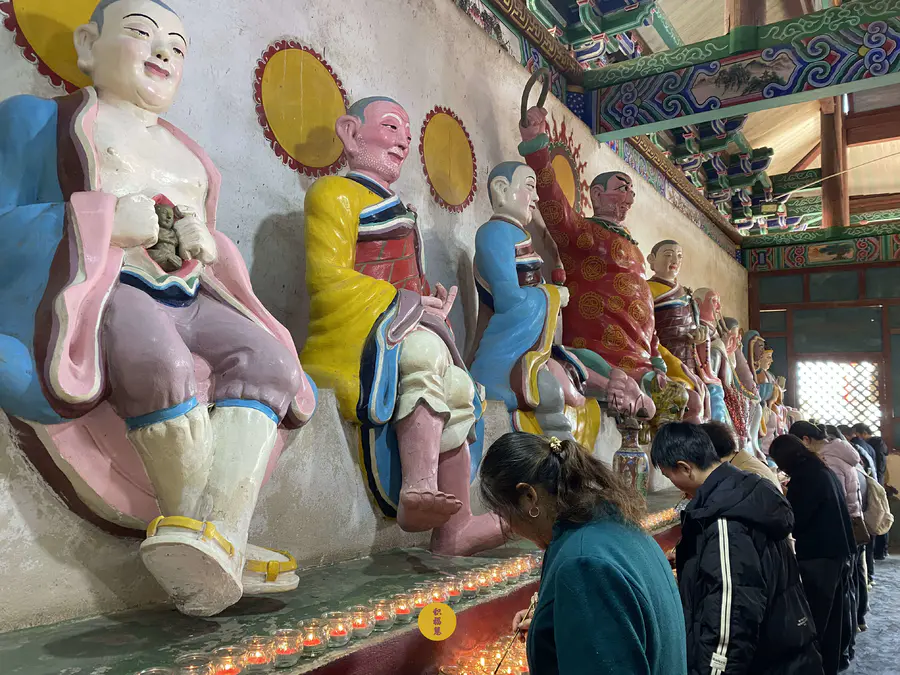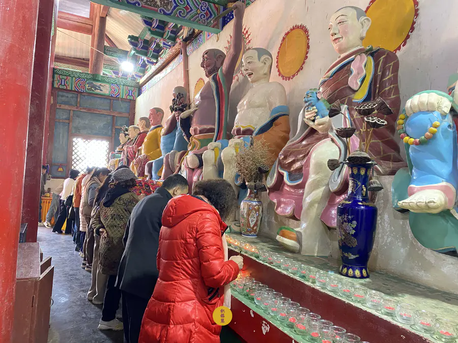 安国寺大雄宝殿内,十方善信怀着对新一年的美好憧憬,点亮承载着大家善愿的酥油灯。