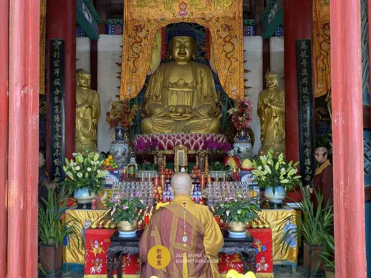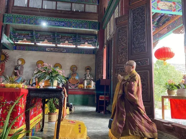 祝圣法会开始。主法法师虔诚合十,口念意观,拈香顶礼。四众弟子,合掌礼赞,虔诚唱诵。一曲香赞,声声澈耳。戒定真香,句句印心。
