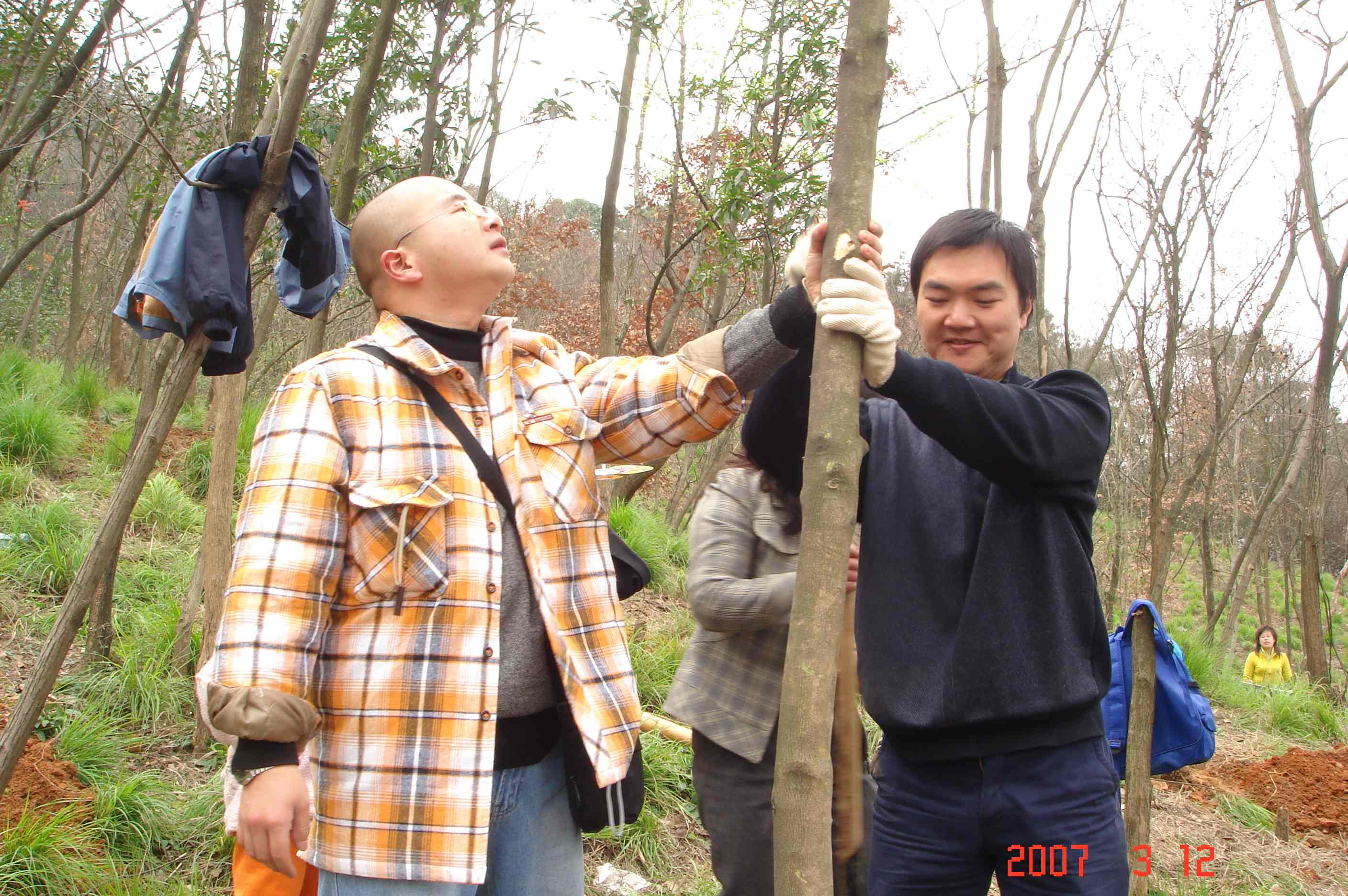 佛教导航 武汉讯 3月11日武汉伽兰家居佛友一行20余人,踏着春的脚步来到马鞍山森林公园植树。大家挖坑的、抬树的、、填土的、浇水的、忙得不亦乐乎,让九颗三米多长的树在大家的欢喜雀跃中树立在秀美的太渔山峦 。