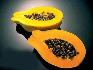 木瓜具有美白、丰胸等美容功效。既可以生食,也可以熟食。但如果你就是冲着木瓜丰胸而来的话,那熟食的效果会远远好于生食哦,可以用鲜木瓜炖汤或者是加蜂蜜的蒸木瓜都是不错的选择。