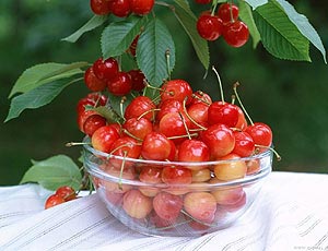 樱桃含铁量丰富,因此具有促进血红蛋白再生的功能,可以防治缺铁性贫血,另外,樱桃还能使皮肤红润嫩白,消除黑斑。但十分要注意的是樱桃不能多吃,这是因为樱桃含铁量比较多,再加上含有一定量的氰甙,所以如果食用过多就会引起铁中毒或氢氧化物中毒。