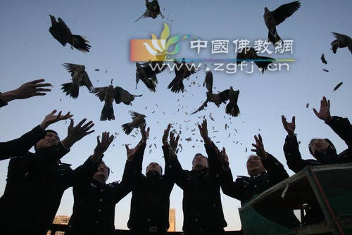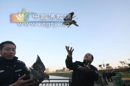 2008年11月27日,武汉市森林公安在东西湖金银湖畔对近期收缴来的近千只野生鸟类进行放生。