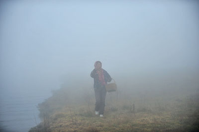 23岁的陈光会每天早晨5点就要起床,到罩满了雾气的大海子边给黑颈鹤撒包谷。她做这件事已经两年了。