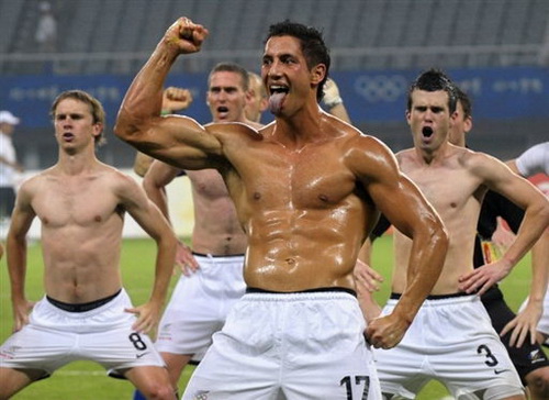 比利时国奥队员脱去上衣大跳土著舞