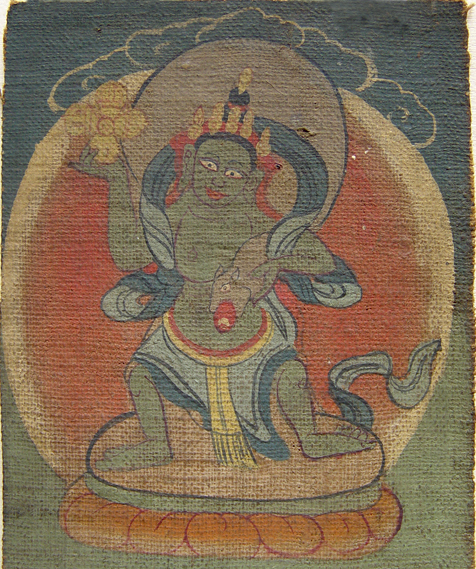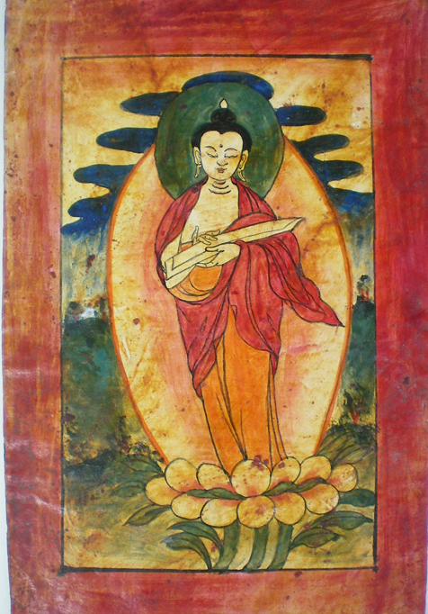 唐卡是最常见的佛教绘画形式,“唐卡”为藏语的音译,指一种可以悬挂的卷轴画。在西藏出现较早,有人考证源于吐蕃时的文告和僧人讲经说法时随身携带的布画。画幅大小差距较大,小的只有数寸,大的则到几十米,如西藏扎什伦布寺晒佛台,布达拉官及甘肃省拉卜楞寺展出的巨型唐卡。唐卡画以宗教人物和宗教历史事件、教义为主要描绘对象,多挂于寺院中。制作时,先将画布钉于木框上,用白垩粉合胶作底,干后开始起稿,绘画、上色、画完后再用锦锻装裱、加轴。唐卡深受广大僧俗百姓喜爱。