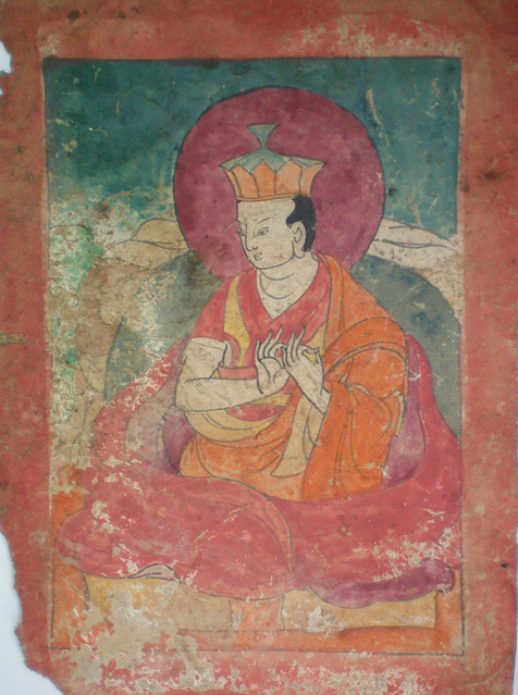 这里所谓“小的只有数寸”系指唐卡中的一类品种——微型唐卡!关于微型唐卡,康·格桑益希的《藏族美术史》的说法是:“以画幅微形显其精细和技艺精深,是这一时期唐卡艺术中的又一稀世珍品。微画大师噶玛·丹增格列尼玛曾绘过1幅《六十二上师佛像》,画幅仅3寸见方,但众多人物姿态生动,线条刚劲、有力,色彩绚丽,被世人称之为巧夺天工的神品;康巴德格八邦寺被誉为传奇之宝的著名画师通拉泽翁,不仅画论精到,艺术造诣亦十分精深,更以善绘微画而称著。康巴另一位颇具盛名的唐卡画师郎卡杰,也是一流的微画高手,他画风工细流利,风格清新,有时1幅画常创制数年,他的杰作《释迦牟尼传》,金线勾萌,丹碧交映,峰峦重叠,佳图绝妙,画中人物大小不到1寸,但精细人微,须眉毕现。”在甘丹颇章时期出现了微画大师,但是其微画创作内容尚未触及匝尕的表现内容——密修与灌顶用的观想对境!因此,他们是技艺高超的微型唐卡大师而不是匝尕画师。