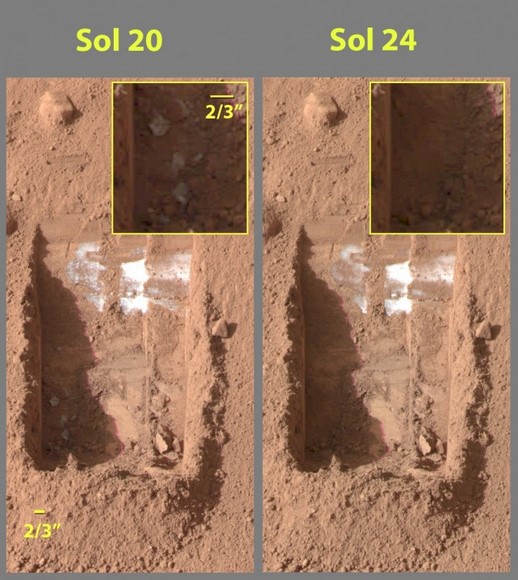 2008年5月25日,美国航空航天局(NASA)的凤凰号火星探测器在火星北极地区成功着陆。它的科学使命是研究火星极地气候、环境及土壤,研究火星地表及表面下层环境中存在生命的可能。6月中旬,凤凰号在火星地表开挖沟槽,取土化验。拍回的照片显示沟渠底部出现的神秘白色物质,可能是盐,也可能是水冰。几天后,这些物质逐渐消失,证明它们是冰冻的水——这是迄今为止火星上存在水冰的最直接证据。凤凰号对土壤的分析也表明,火星土壤能够维持生命生存。凤凰号还在火星上观察到了霜冻现象,并观察到了高空云层中的降雪。不过,凤凰号并未在火星上发现曾经存在生命的证据。11月2日,凤凰号探测器因火星北极冬季的到来而停止工作,为期5个多月的探测任务画上了圆满的句号。