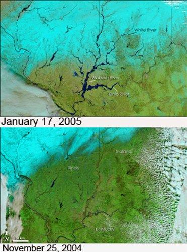 2005年1月,持续数日的大雨和降雪引发印地安那、伊利诺斯、肯塔基等美国三个州境内的河水暴涨,使周围地区变成一片汪洋。随之而来的气温变暖趋势使积雪融化,令灾情进一步恶化。