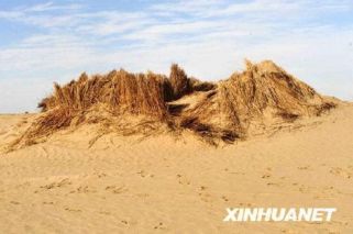 密密匝匝的芦苇根留下了大湖里曾有密不透风的芦苇荡的痕迹。当年风起时必是苇叶摇曳、苇絮纷飞;如今风起,只是尘扬沙流。芦苇根止不住沙丘的移动,即便是罗布人当年为安乐窝编造的密实的芦苇墙,在风与沙的夹击下,也只能勉强留下了依稀的家居轮廓。