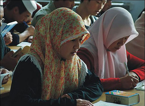 中国人,当穆民,读中文,兼阿文。