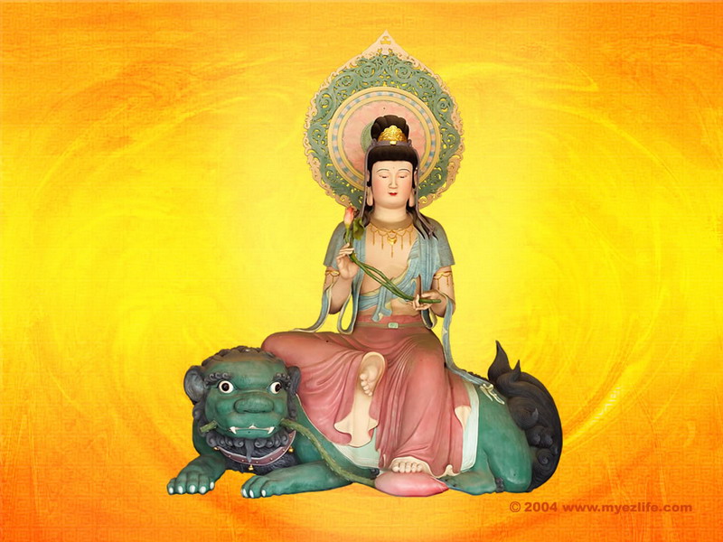 文殊菩萨看他非常诚恳,便准备第二天亲自带领众弟子和许多天人到王宫赴宴。阿阇世王听到菩萨同意赴宴,非常高兴的问: