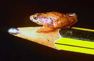 小青蛙也能闹出大动静。这是在婆罗洲的森林中进行考察的马来西亚和德国科学家们的感受。当时他们正试图弄清森林中那些刺耳响声的来源。这种声音常在日落时分出现。科学家们循声而去,敲打树叶,看看是否里面藏着什么东西。接下来,他们便看到一群古铜色的小青蛙跳了出来,它们体长仅有大约1厘米,这是人们已知最小的成年蛙类,真正叫“芝麻大小”。要想象它们到底有多小,如果你将一只这样的青蛙放在一枚硬币一头,它还得一大跳才能到另一头。