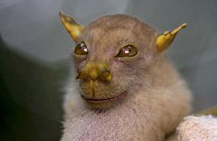 这种新发现的果蝠同样生活于巴布亚新几内亚的丛林中。看上去又难看又可爱。它在树林中飞行,到处寻找果子以便填饱肚子,在此过程中它帮助将植物种子散播各处。因此这种小动物对自然生态系统非常有好处。