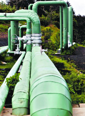 在危地马拉境内活动最频繁的帕卡亚火山,距离顶峰大约500米处,一些管道沿山体迂回而下,把温度高达175摄氏度的蒸汽和水输送至地热发电站。