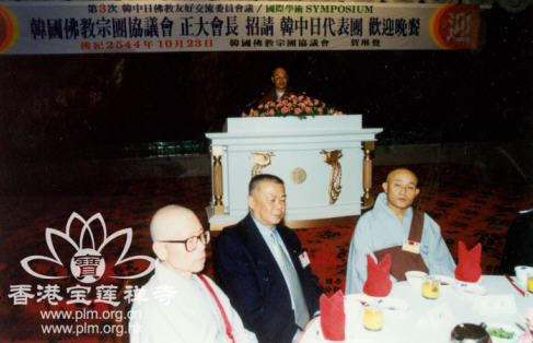 2000年10月20日至28日 中韩日佛教友好交流委员会的中国委员和中国佛教代表团随喜团一行赴韩国出席了中韩日佛教新世纪世界和平祈愿法会和国际学术研讨会、第三次韩中日佛教友好交流委员会会议,并进行了友好访问。