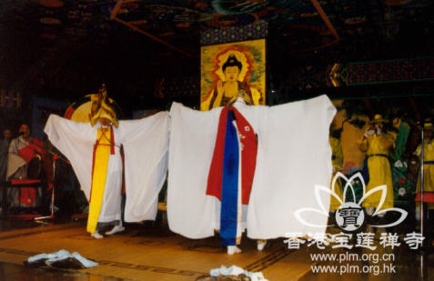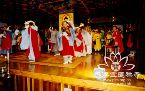 10月25日中国佛教随喜团在韩国太古宗奉先寺观看灵山祭表演