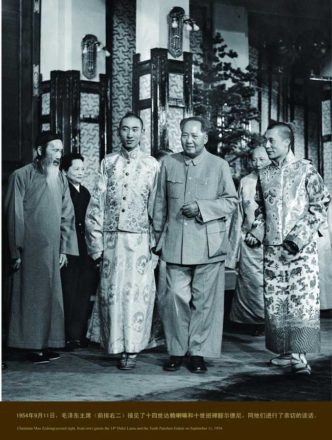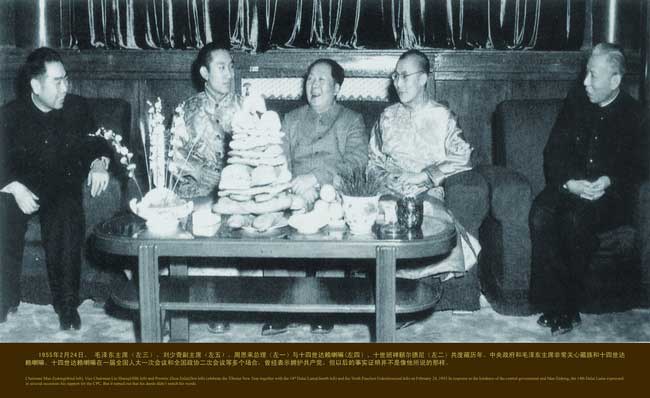 毛泽东、刘少奇、周恩来与十四世达赖喇嘛和十世班禅额尔德尼共度藏历年