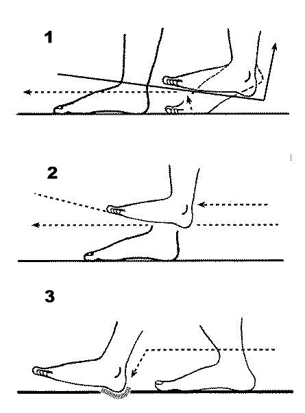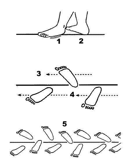 1‧举足时,脚指先提,脚跟后提。