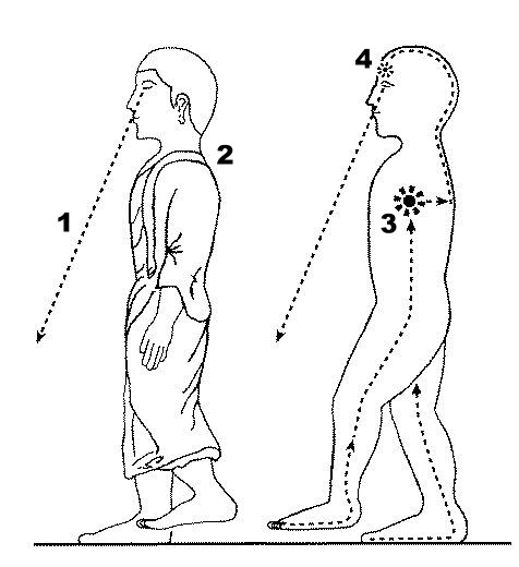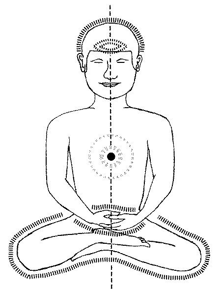 3‧正念于胸部的意触,可体验到意门,也就是,意识的出口处。