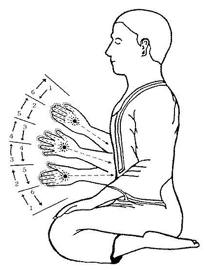 第二图:当移动前臂上下时,正念于掌心或指尖。