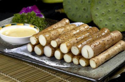 魔芋系一种根茎作物,有降脂、减肥、防癌、开胃的作用。它含有葡甘聚糖,其凝胶可在肠道中形成不同孔径的半透明膜附着在肠道黏膜上,形成防卫屏障,阻挡有毒物质与致癌物质的侵入,起到防癌与防肠道病的作用。