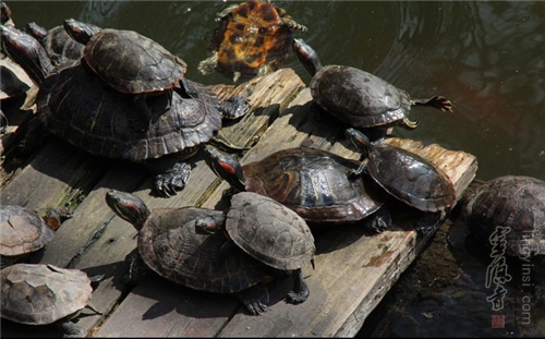 只见钓上来的不是什么“大鱼”,而是一只大乌龟,大乌龟的身上居然还吊着几只小乌龟——它们因为紧衔住大乌龟的身体不放而一起被钓了上来。刚放到地上,几只小龟立即象卫士般紧紧地把大乌龟围住,一双双小眼紧瞪着垂钓者,使得向来自认为很沉着的他也不知所措。
